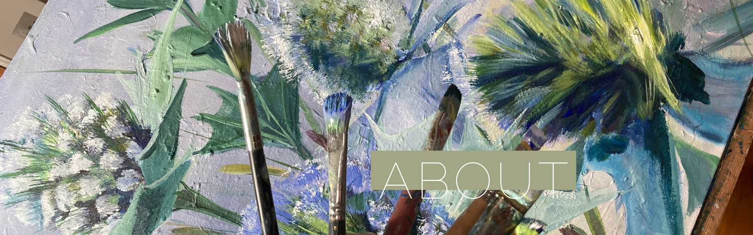 I primarily work with acryllics. Sometimes with oils and mixed medias. And then i love to have serveral paintings in the process at a time.